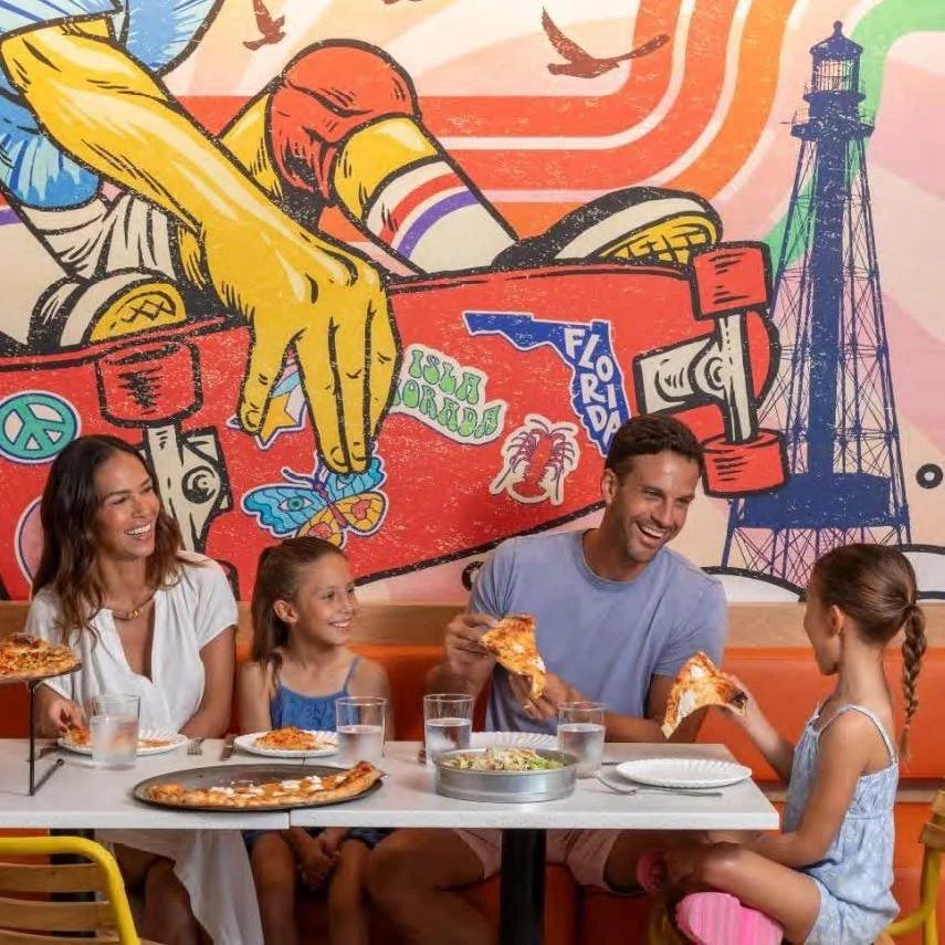 A pizza paradise in the Florida Keys, known for signature pies and a laid-back tropical vibe. Enjoy beer, wine, or frozé in a vibrant indoor-outdoor setting with retro art, beachy hues, and towering banyan tree.