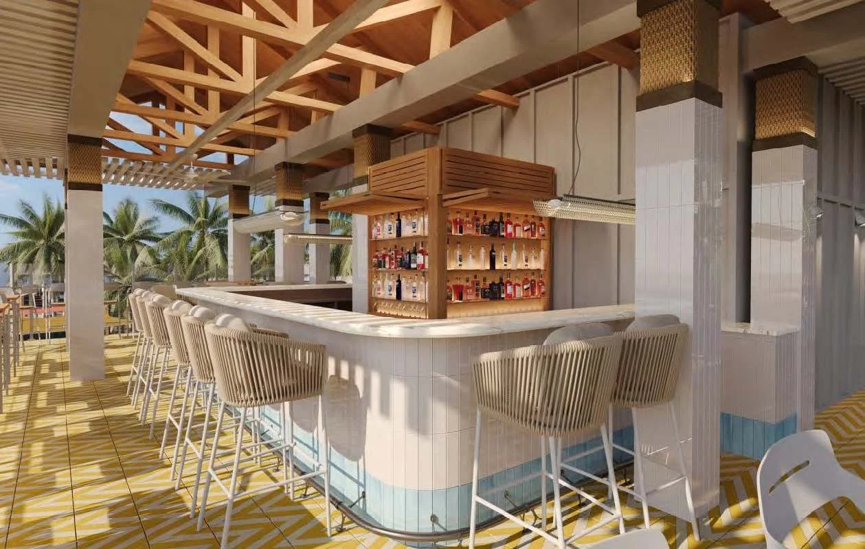 Blending coastal elegance with Latin flair, this cokctail bar features warm woods, handcrafted tiles, and open-air seating, all designed ti highlight stunning 270-degree ocean views. A refined yet relaxed space where island luxury meets effortless style.